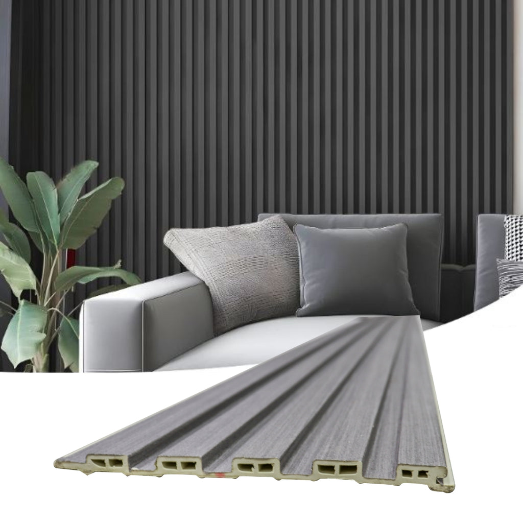 Painel Ripado Cinza - 2,90m Madeira Ecológica WPC – Sofisticado Interno