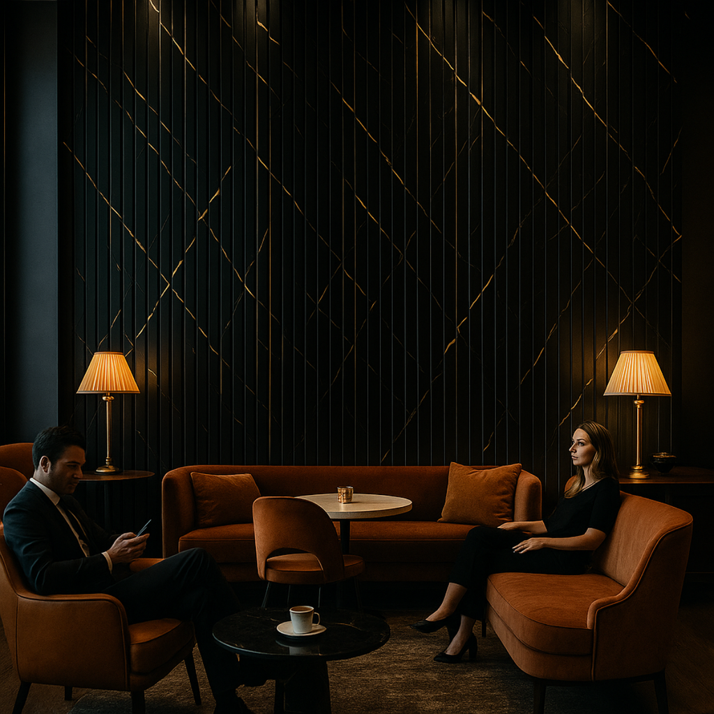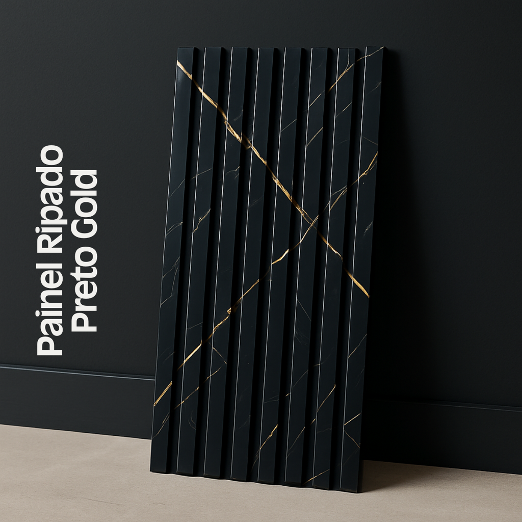 Painel Ripado Preto Gold - 2,80m Madeira Ecológica WPC – Sofisticado Interno