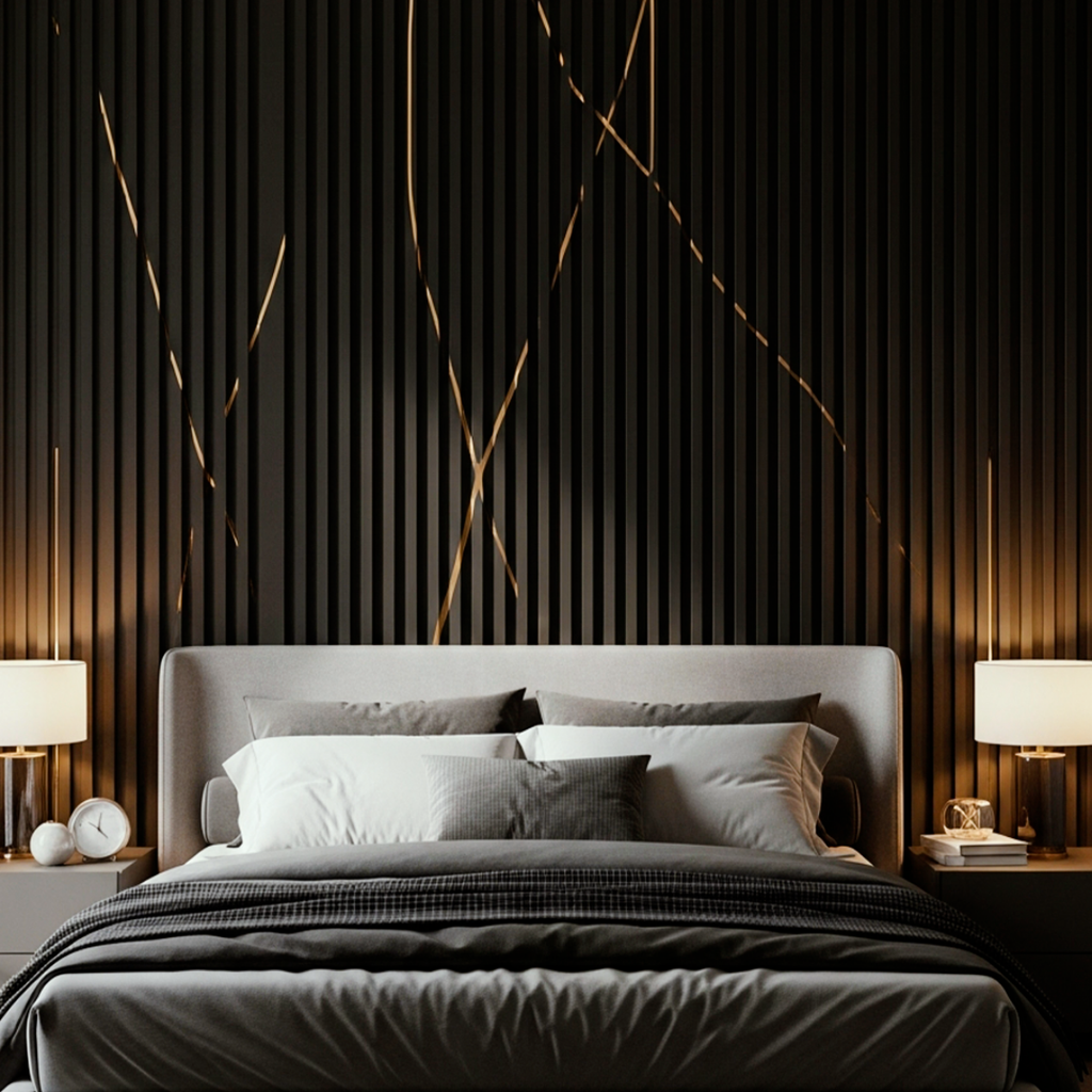 Painel Ripado Preto Gold - 2,90m Madeira Ecológica WPC – Sofisticado Interno
