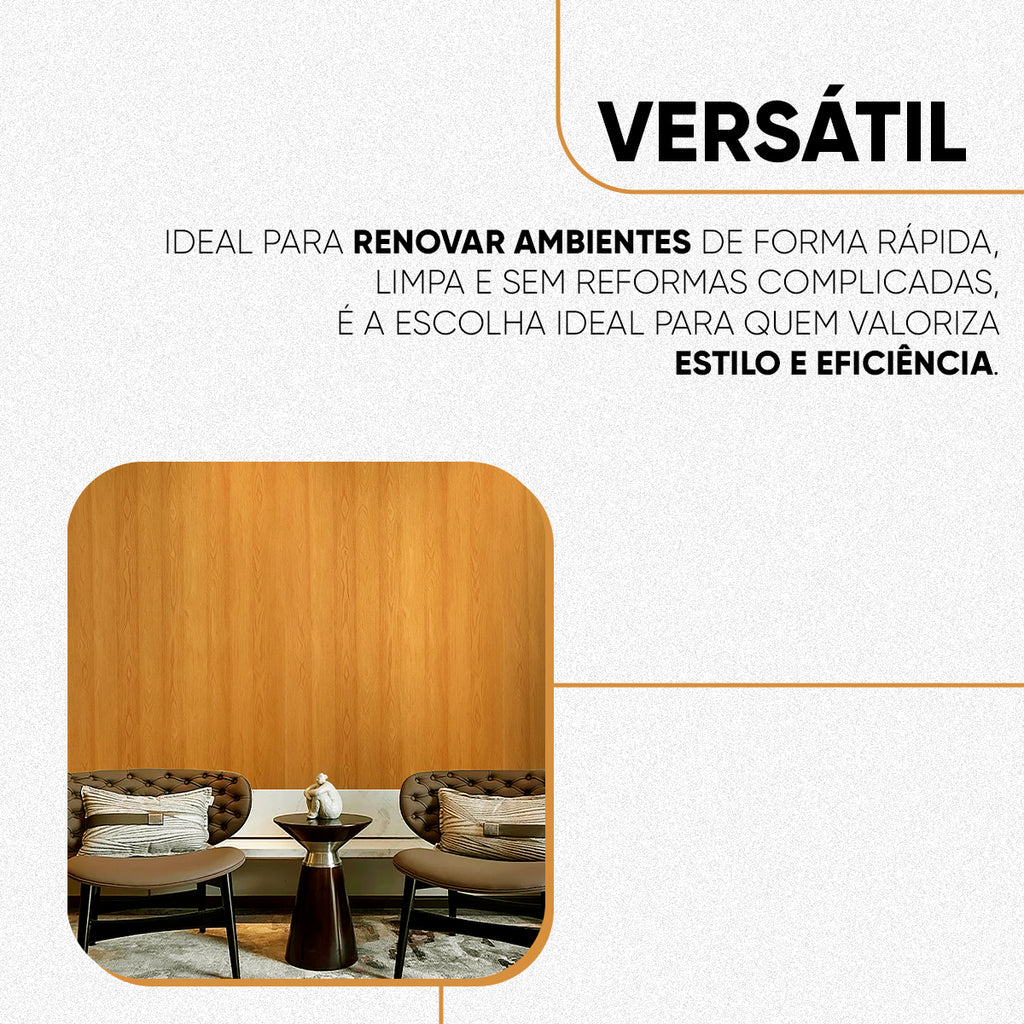 Placa decorativa vinílico 3x1,20m com acabamento premium. Revestimento decorativo ideal para paredes internas com instalação fácil, rápida e sem sujeira.