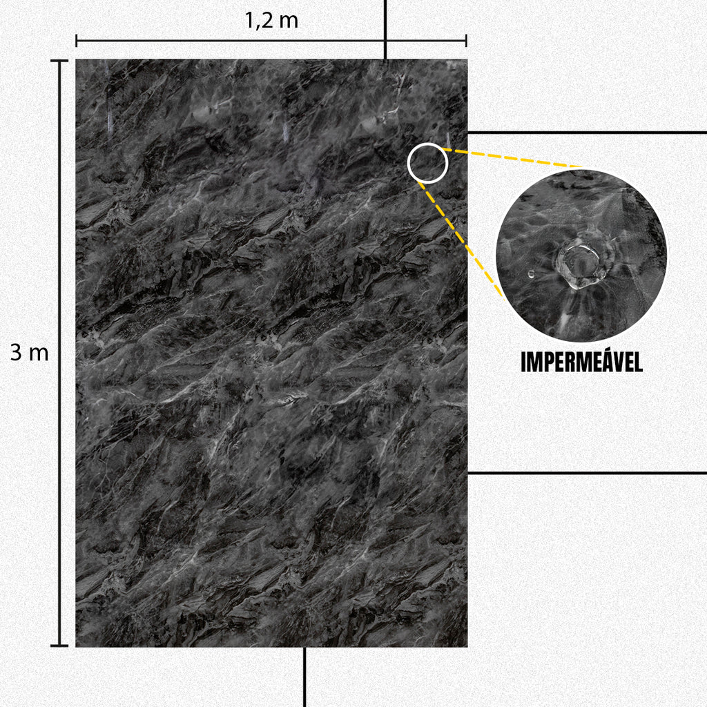 Placa de Mármore Vinílico Cinza Escuro 3mx1,20m – Revestimento Autocolante